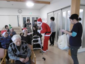 いきなりの登場で皆さん驚かれていましたが、サンタさんが手渡ししてくれたプレゼントをとても喜んで下さいました。